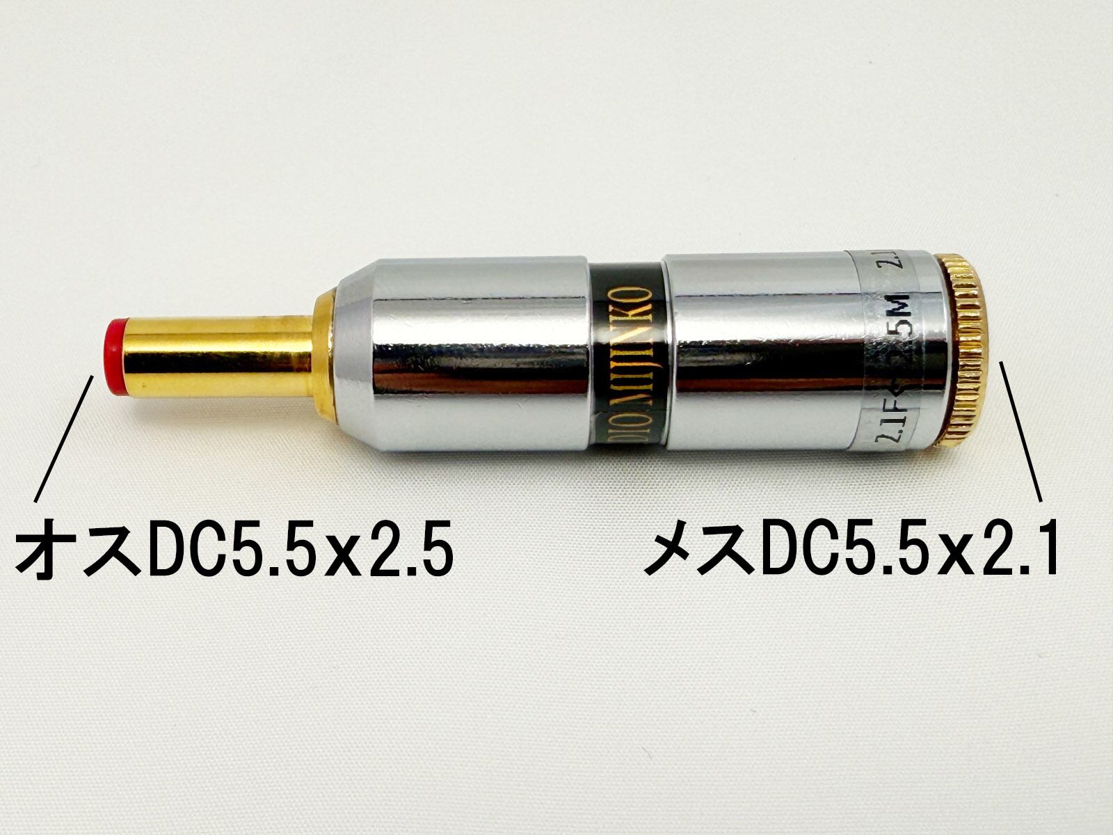 SILVER BULLET DC2.1F-2.5Mは、5.5x2.1(通称DC2.1)のDCプラグの先端に連結することで、5.5x2.5(通称DC2.5)に変換しつつ、DC電源の音質を飛躍的に向上させます。