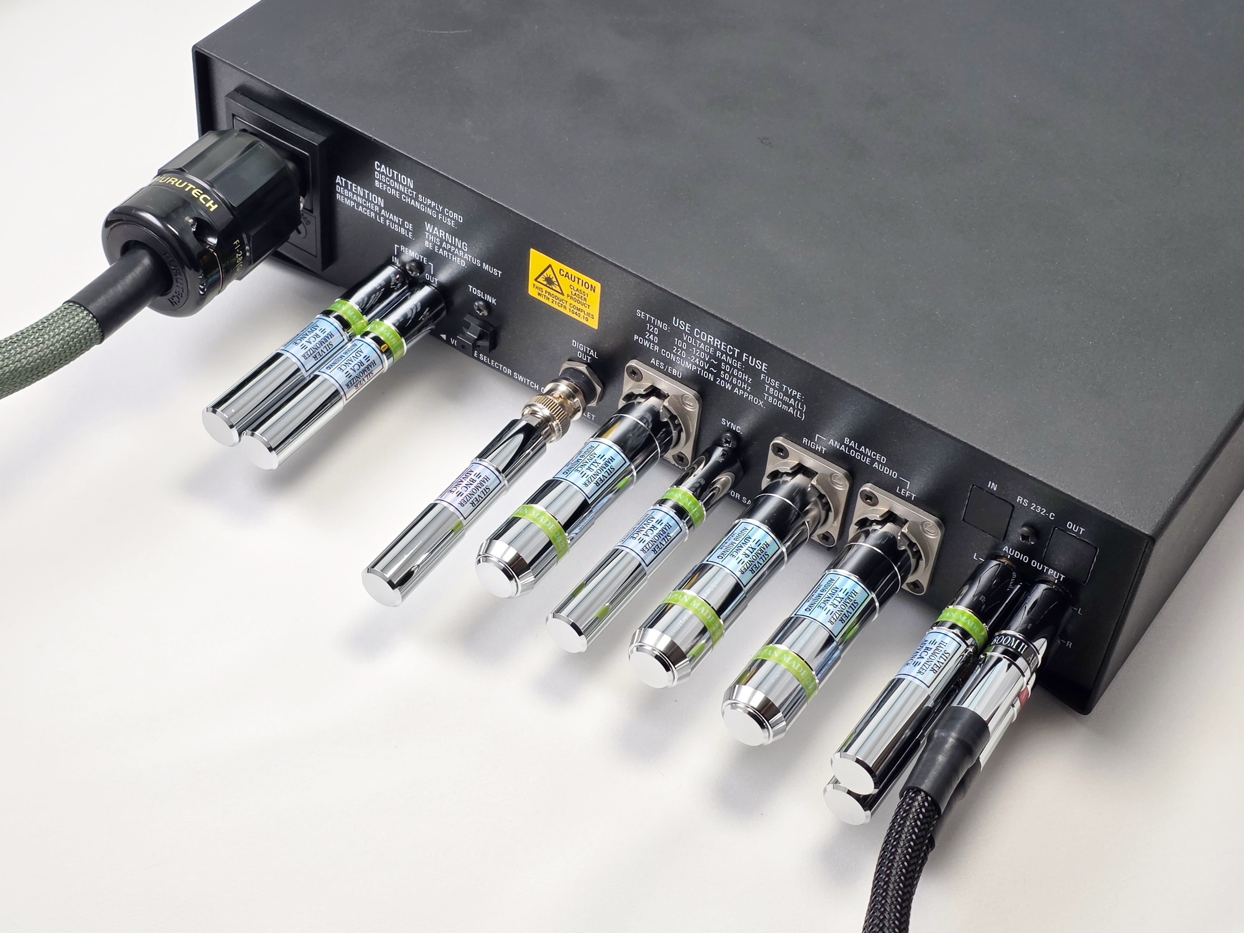 さらに、複数本の使用により、効果が増大します。クロックジェネレーターには複数のBNCジャックがありますが、使われているのはごく一部だと思います。未使用のBNCジャックは、全てノイズの混入源です。願わくば、空いている全てのBNCジャックに、SILVER HARMONIZER BNC ADVANCE を接続することをお勧めします。これにより、格段にオーディオシステムの音質が向上します。