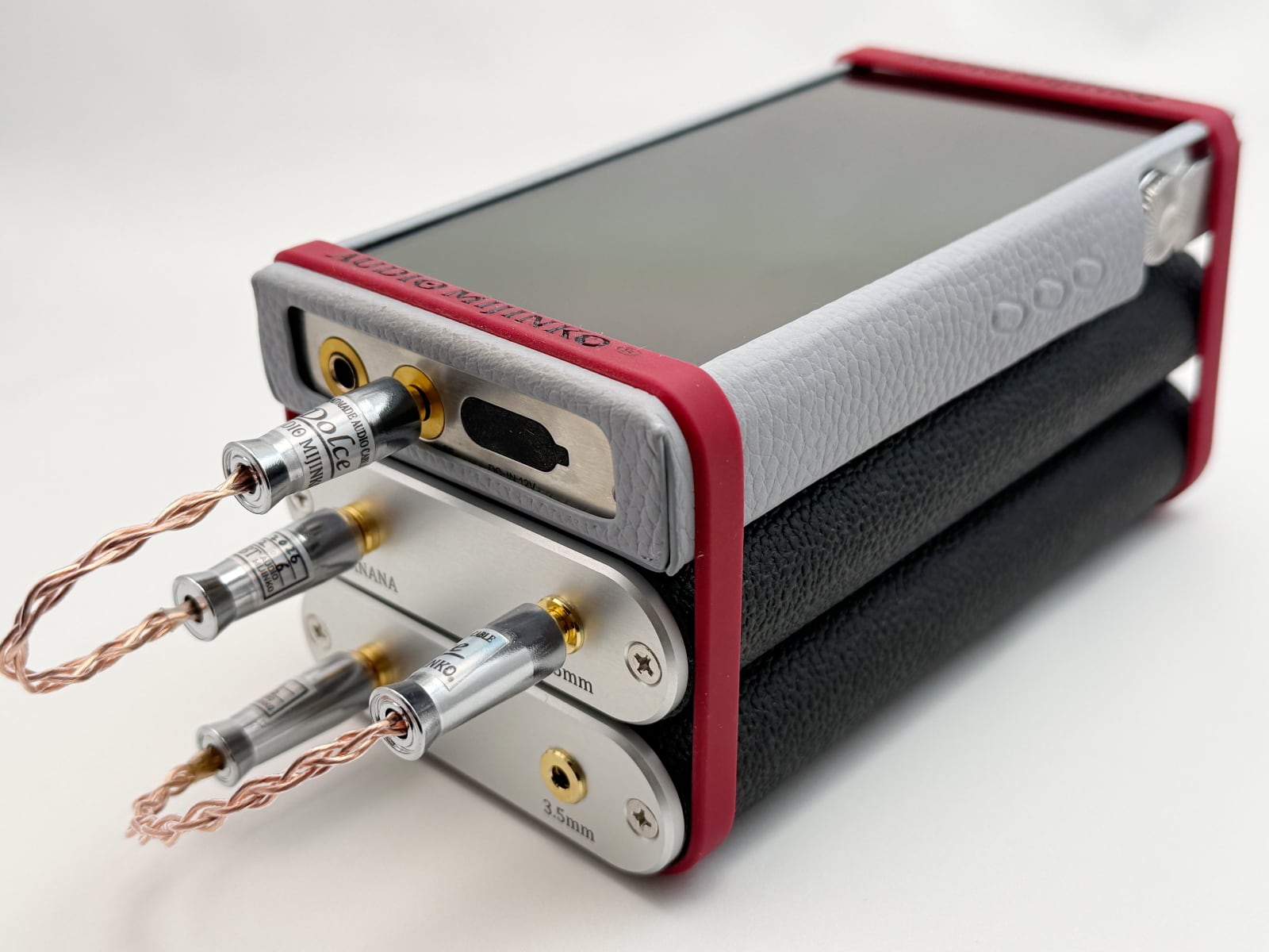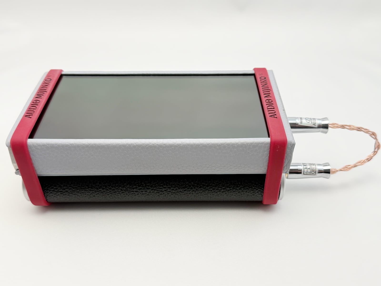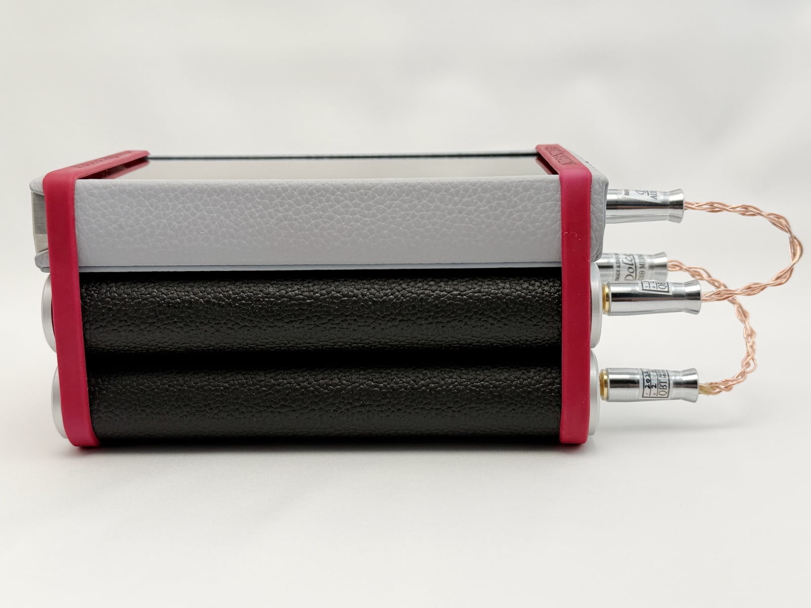 ハウジングには、アルマイト加工されたアルミケースに、シボ加工された牛革をあしらい、高級カメラを彷彿とさせる外観としています。牛革は、DAPとのスタッキング時に、DAPに傷が付かないようクッション代わりにもなっています。