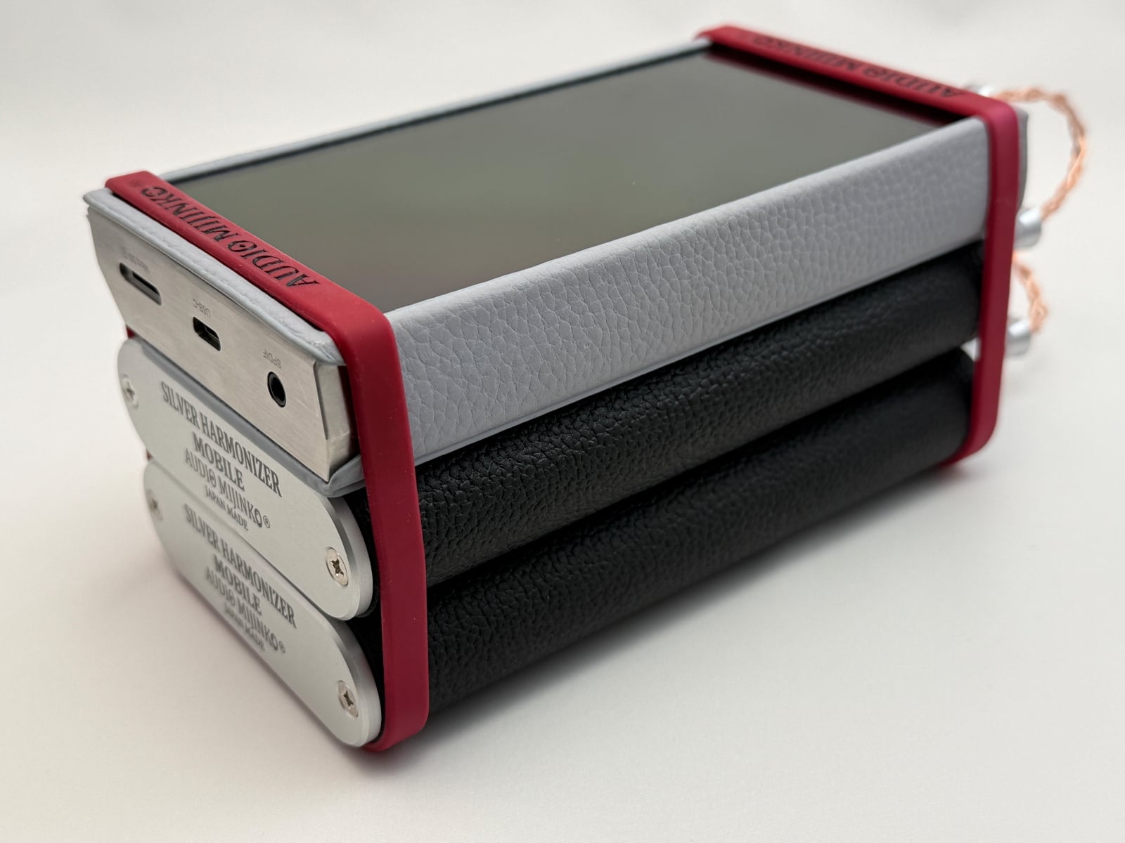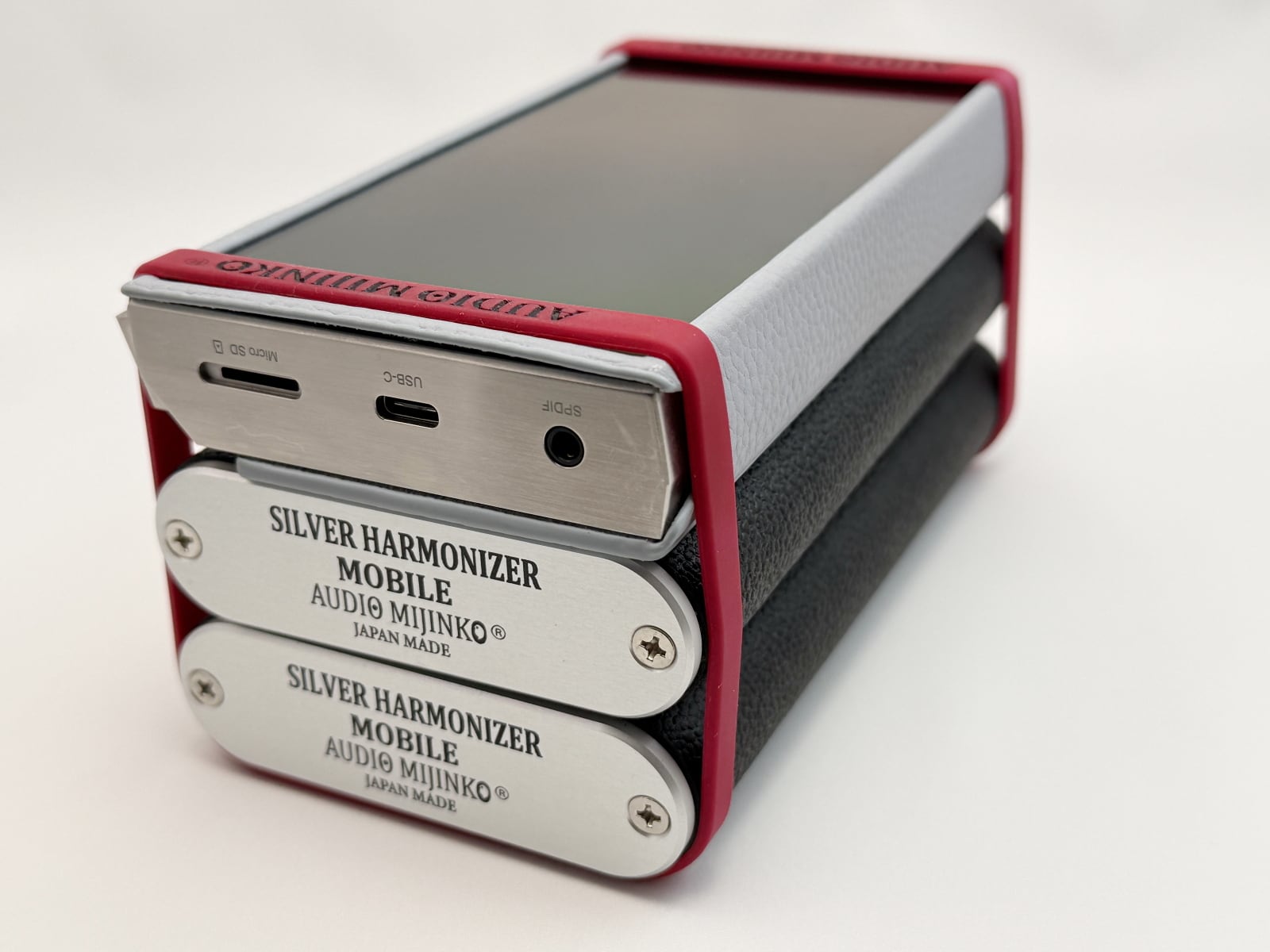 DAP(デジタルオーディオプレーヤー)と重ねて使える、スタッキング可能な仮想アースのニーズ。iBassoのDX340とのスタッキングイメージ写真をご覧の通り、SILVER HARMONIZER MOBILEはDX340などの大型DAPと同サイズとしており、これらハイエンドDAPと見栄えよく重ね置きできます。