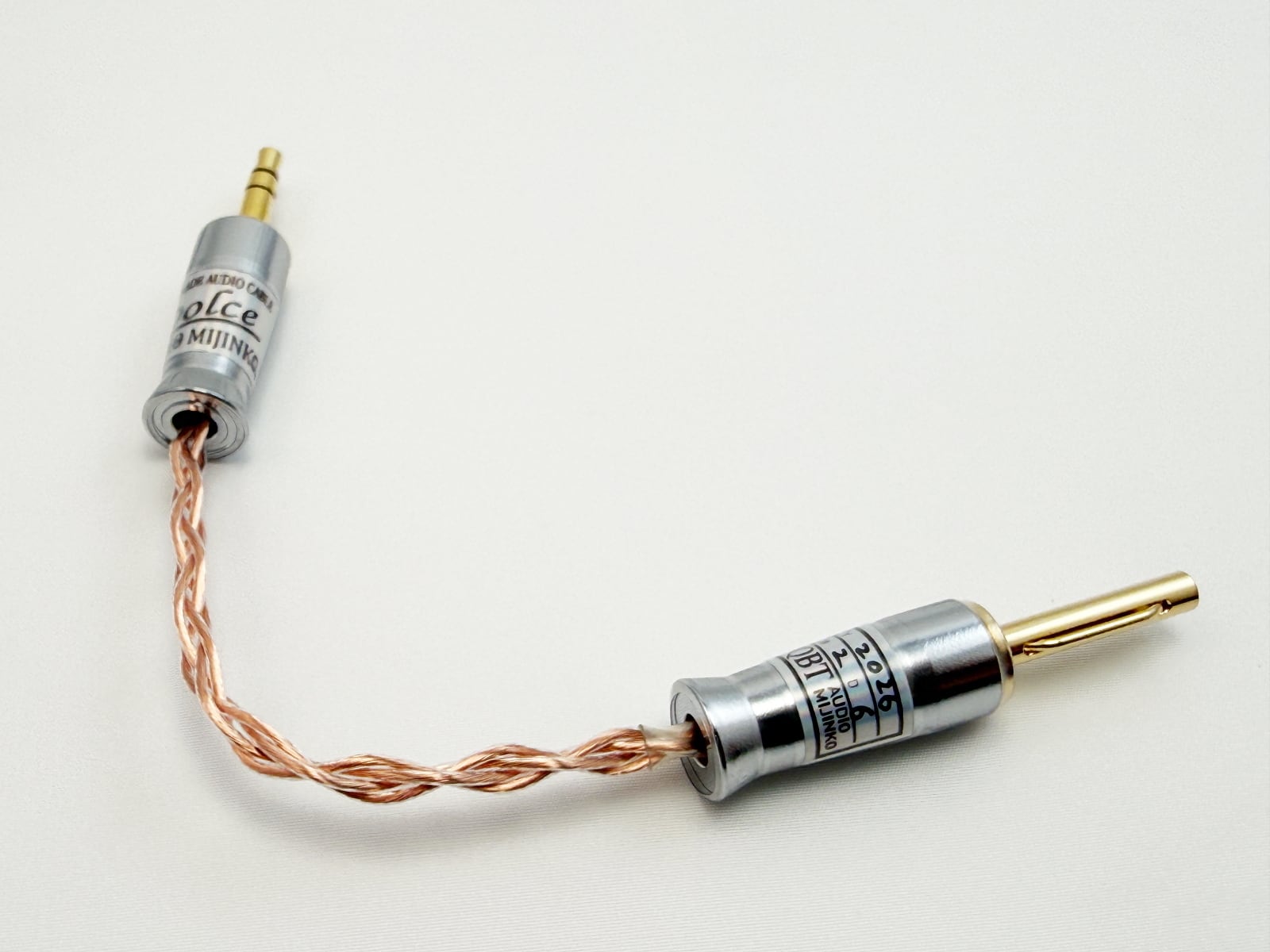 なお、バナナジャックと3.5-3ジャックとは、内部で銀線を介して導通しており、どちらをお使いいただいても音質差がないよう仕立てております。